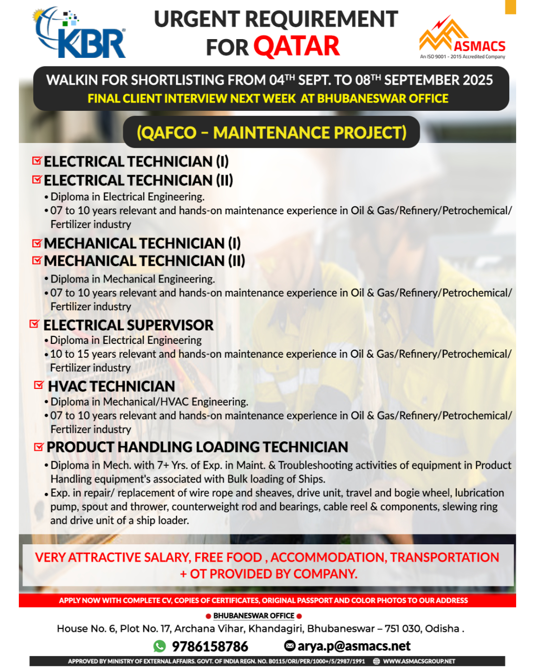 For QAFCO β Maintenance Project (Through KBR & ASMACS)